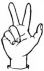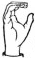 На ћирилици написано САНДРА МУМАЛО састоји се из 12 слова [?]. Исписано ћириличном једноручном азбуком за глувонеме:
